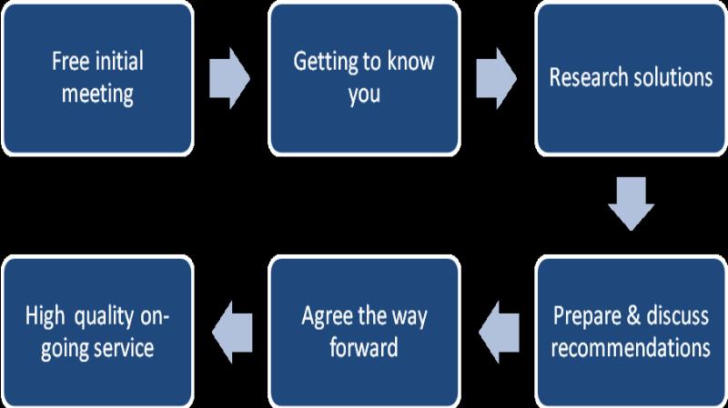 - At the end of the initial meeting if you are happy to proceed we will discuss our client service proposition and agree how you wish to pay for the advice